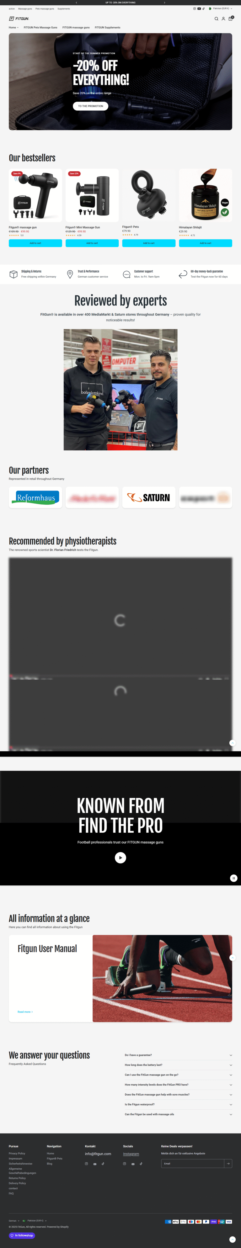 FitGun is a Shopify-based wellness brand offering smart recovery tools through a clean, customizable, and conversion-focused website that blends modern design with a strong focus on performance and user experience.